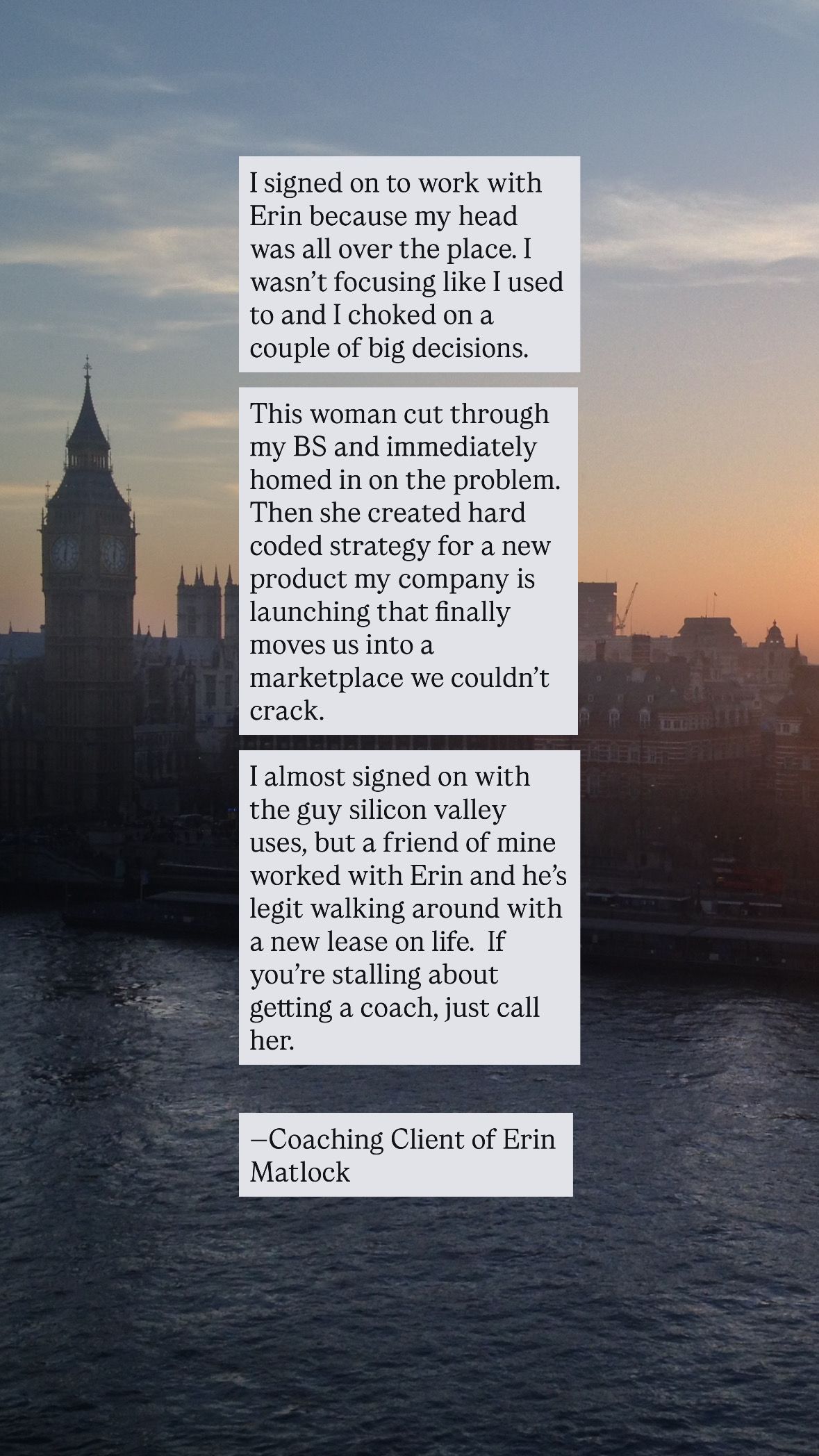 Erin Matlock is an internationally recognized coach and advisor celebrated for her integrative, deeply human approach to transformation. She works with high-performing individuals—including CEOs, media figures, New York Times bestselling authors, elite athletes, and visionary entrepreneurs—guiding them through pivotal transitions and accelerated periods of personal and professional evolution.